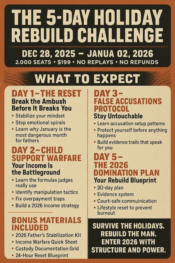 Essentials 4 Men, Divorce Flagship is educational and strategic training systems designed to help men improve organization, communication, and documentation in family and legal matters.